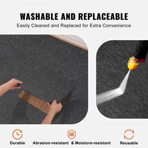 VEVOR Carpet Tiles Reusable, 20"x 20" Carpet Squares With Padding Attached, Soft Padded Carpet Tiles, Easy Install DIY for Bedroom Living Room Indoor Outdoor (20 Tiles, Dark Gray)Wide Range of ApplicationsHealth-conscious MaterialsCustomizable CuttingEasy MaintenanceSoundproofing ExcellenceSecure InstallationThickness: 0.197” / 5mm,Specifications: 20x20”,Color: Dark Gray,Overall Product Dimensions (L x W x H): 20x20x0.197in / 500x500x5mm,Model: H-05,Quantity: 20pcs,Weight: 600g/m²,Net Weight (Including all accessories): 27.6lb / 12.5kg