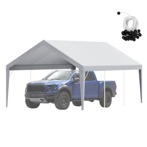 VEVOR Carport Replacement Canopy Cover 13 x 20 ft, Garage Top Tent Shelter Tarp Heavy-Duty Waterproof & UV Protected, Easy Installation with Ball Bungees,Grey (Only Top Cover, Frame Not Include)Practical SizeDurable MaterialEasy InstallationUser-Friendly DesignSpacious Coverage4 Leg WrapsDiagonal Size: 7.3ft/2225mm,Color: Grey,Model: SXYQCPBH13X20,Product Dimensions: 20 x 13 x 3.5 ft/6100 x 3940 x 1080 mm,Net Weight: 16.3lbs/7.4kg,Main Material: PE Plastic Woven Fabric,Aluminum Eyelets: 50