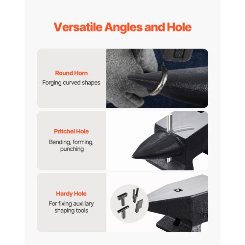 VEVOR Cast Steel Anvil, 22 Lbs(10kg) Single Horn Anvil with Large Countertop and Stable Base, High Hardness Rugged Round Horn Anvil Blacksmith, for Bending, ShapingForged Steel ConstructionUsages of Hole & HornQuenching TreatmentSolid & Stable DesignLarge CountertopVarious ApplicationRound Hole: 0.59 in / 15 mm,Model: 22BLACK,Hardy Hole: 0.59 in / 15 mm,Material: Hard Steel,Working Table Size: 9.06 x 3.54 in / 230 x 90 mm,Hardness: 55 HRC,Weight: 22 lbs/10 kg,Product Size: 13.58 x 4.53 x 3.94 in / 345 x 115 x 100 mm