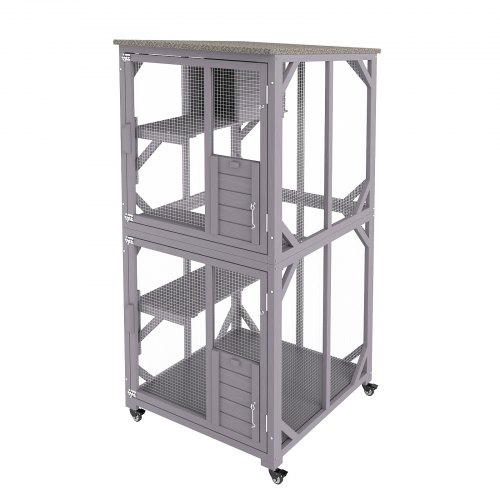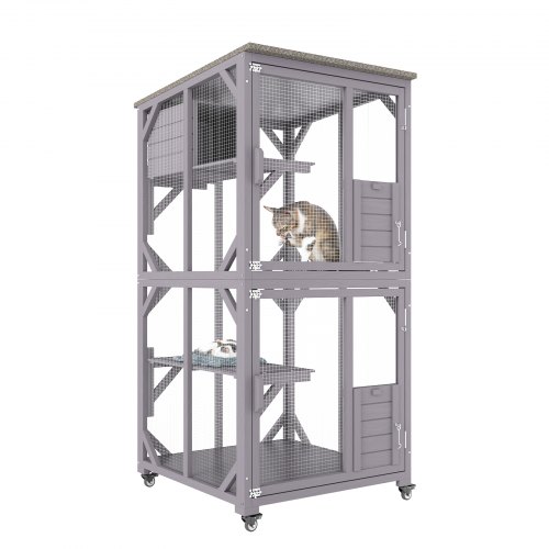 VEVOR Cat House Outdoor, 3-Tier Large Catio, Cat Enclosure with 360° Rotating Casters, 2 Platforms, A Resting Box and Large Front Door, 29.9 x 34 x 64.1 inch3-tier Wooden Cat PlaypenGalvanized Wire Mesh & Fir Wood PlatformSimple InstallationMobile WheelsFor Various PetsLarge Front DoorsMain Materials: Galvanized Mesh+Fir Wood,Number of Tiers: 3,Color: Gray,Item Model Number: CH470,Product Weight: 54.8 lbs/24.9 kg,Shelf Load Capacity: 30 lbs,Number of Doors: 1,Product Dimensions: 29.9x34x64.1 inch/760x865x1630 mm