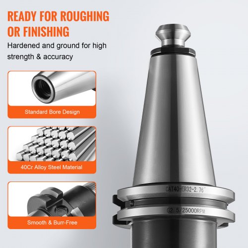 VEVOR CAT40 Collet Holder ER 16/32 Collet Set, 35 PCs, SLN FMB ER16/32 APU Tool Holders Spring Steel Collet Chucks with 10 Pull Studs and 3 Wrenches, for Milling Machine Drill Presses Boring MachineComplete SpecificationsOutstanding PerformanceHigh PrecisionLabeled Storage BoxCorrosion-Resistant ExcellenceAnti-Rust Oil ImmersionType: CAT40,Collet Holder Hardness: HRC48-52,Item Model Number: CAT4035,Quantity: 35 pieces,CAT40-FMB Collet Holder TIR: 0.0002 in/5 μm,Material: 40Cr & 45# Alloy Steel,CAT40-ER Collet Holder TIR: 0.0002 in/5 μm,CAT40-APU Collet Holder TIR: 0.005 in/130 μm,ER Collet Chuck TIR: 0.0006 in/15 μm,Dynamic Balance: G2.5/25000RPM,Net Weight: 41 lbs/18.6 kg ±3%,CAT40-SLN Collet Holder TIR: 0.0004 in/10 μm