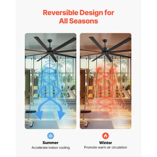 VEVOR 84 In Ceiling Fan without Light, 6-Speed Remote Control, Aluminum 8-Blade, Reversible DC Motor, Modern Low Profile Flush Mount Exterior Fan for Bedroom, Living Room, Patio, Indoor/Outdoor, Black3 Different Sized DownrodsInstallation Made EasyMatch Various Home Decor StylesEffortless InstallationVersatile & StylishEasy to CleanProduct Dimensions(10-in Downrod): Φ84.25 x 17.79"/Φ2140 x 451.8 mm,Product Dimensions(20-in Downrod): Φ84.25 x 27.79"/Φ2140 x 705.8 mm,Color: Black,Max Airflow Capacity: 12000 CFM,Product Dimensions(6-in Downrod): Φ84.25 x 13.79"/Φ2140 x 350.2 mm,Number of Speeds: 6,Wind Directions: Upward, Downward,Noise Level: ≤45 dB,Timer: 1/2/4/8 Hour,Max Rotation Speed: 90 RPM,Item Model Number: FR25049NL-84"MBK,Number of Blades: 8,Net Weight: 28.22 lbs / 12.8 kg,Power: 53 W
