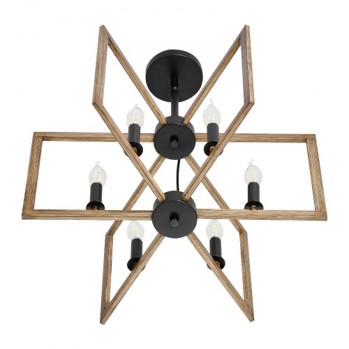 6-Light Chandelier Metal Modern Chandelier Adjustable Height for CeilingsSix-Light ChandelierEasy Bulb ChangeQuick InstallationPractical and StylishVersatile UseStable and SteadyCeiling Connection: Downrod,Shape: Lantern,Bulb Base: E12,Color: Black + Dark Wood,Compatible Bulb Wattage: ≤40W,Power Supply: Hardwired,Adjustable Height: 41.3 in / 1050 mm,Product Dimensions (with All Downrods): 21.6 x 21.6 x 63.8 in / 550 x 550 x 1620 mm,Operating Voltage: AC110V, 50Hz/60Hz,Item Model Number: BK9021-6,Downrods: 5 pieces,Product Dimensions (L x W x H): 21.6 x 21.6 x 12.8 in / 550 x 550 x 325 mm,Number of Light: 6,Net Weight: 6.83 lbs / 3.1 kg,Main Material: Iron