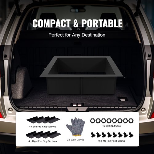 VEVOR Fire Pit Ring Square 36x36 in Outer Steel Liner DIY Campfire Ring FirepitHigh-Temperature CoatingAmple Internal SpaceDIY FlexibilitySeamless AssemblyWide ApplicationHigh-Temperature CoatingThickness: 0.1 in / 2.5 mm,Inside Length x Width: 30 x 30 in / 762 x 762 mm,Number of Sections: 8,Color: Black,Model: YCIS-30001-30,Product Weight: 28.22 lbs / 12.8 kg,Height: 10 in / 254 mm,Outside Length x Width: 36 x 36 in / 914.4 x 914.4 mm,Product Dimensions: 35.98 x 35.98 x 9.84 in / 914 x 914 x 250 mm,Main Material: Q235 Carbon Steel