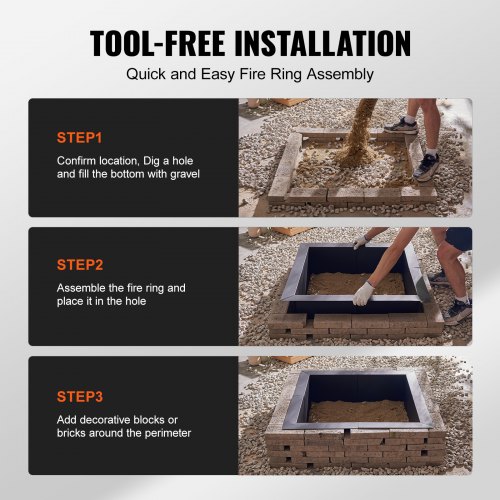 VEVOR Fire Pit Ring Square 42x42 in Outer Steel Liner DIY Campfire Ring FirepitHigh-Temperature CoatingAmple Internal SpaceDIY FlexibilitySeamless AssemblyWide ApplicationHigh-Temperature CoatingThickness: 0.1 in / 2.5 mm,Inside Length x Width: 36 x 36 in / 914.4 x 914.4 mm,Number of Sections: 8,Color: Black,Model: YCIS-30001-30,Product Weight: 33.95 lbs / 15.4 kg,Height: 10 in / 254 mm,Outside Length x Width: 42 x 42 in / 1066.8 x 1066.8 mm,Product Dimensions: 42.01 x 42.01 x 9.84 in / 1067 x 1067 x 250 mm,Main Material: Q235 Carbon Steel