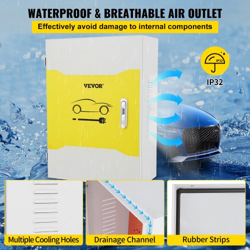 VEVOR Tesla Charger Station Box, 28\'\' x 20\'\' x 10\'\', Outdoor Cable Box Charging Box Cable Organizer, IP32 Waterproof Dustproof Cool Roll Steel Electrical Enclosure Box, for Tesla Wall ConnectorPremium Steel MaterialEnhanced SecuritySet Up in MinutesDesigned with You in MindLet the Heat OutExtensive Application Inner Dimensions(H x W x D): 27.3 x 19.5 x 9.6 in / 69.3 x 49.4 x 24.5 cm,Configuration: With Coded Knock-Outs,Mounting Hole Dia.: 0.3 in / 0.8 cm,Color: White RAL 7032,Mounting Type: Panel Mount,Certification: ISO9001,Ambient Temperature: -4℉ to 140℉ / -20℃ to 60℃,Type: Hinged,Body Material: 0.05 in / 0.12 cm Cold-Rolled Carbon Steel,Galvanized Backplate Dimensions(H x W): 25.6 x 18.1 in / 65 x 46 cm,IP Rating: IP32,Outer Dimensions (H x W x D): 28 x 20 x 10 in / 70 x 50 x 25 cm,Model: BOX-70x50x25,Gasket Material: Insulating Rubber,Finish: Powder Coating (Surface Pickling and Passivization),Net Weight: 41.89 lbs / 19 kg,Package Dimensions(H x W x D): 29.9 x 21.7 x 12.2 in / 76 x 55 x 31 cm