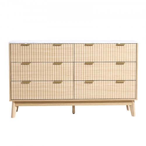 VEVOR 6 Fluted Drawer Dresser, Wooden Chest of Drawers with Sliding & Anti-tip Device, Modern Minimalist Dresser Chest, Fluted Closet Storage for Living Room, Hallway, Bedroom, Entryway, Light WoodMulti-Functional Drawer DresserLarge Storage CapacitySpacious Top SurfaceSmooth SlidingVersatile Use in Multiple SpacesUser-Friendly DesignDrawer External Dimensions: 26.2 x 12.5 x 7.7 in / 66.5 x 31.7 x 19.6 cm,Weight Capacity: Desktop 150 lbs / 68 kg; Drawer 40 lbs / 18 kg per Drawer,Color: Light Wood,Item Model Number: IVY-VVR-011,Style: 2 Columns - 6 Drawers,Material: MDF, Particleboard, Rubberwood,Drawer Internal Dimensions: 24.1 x 11.3 x 4.6 in / 61.3 x 28.7 x 11.7 cm,Drawers: 6 Drawers,Product Dimensions: 15.7 x 54 x 32 in / 39.9 x 137.2 x 81.3 cm,Net Weight: 98.1 lbs / 44.5 kg