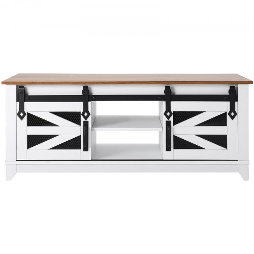 VEVOR 48" Farmhouse Coffee Table, Rectangle Coffee Table with 2 Sliding Barn Doors, 2 Tiers Wooden Rustic Table with Removable Shelves for Living Room, Bedroom, Apartment, or Studio, White & NaturalA New Home TrendConvenient StorageStable SupportPracticality Meets Aesthetic AppealClassic Farmhouse StyleSolid Wood Legs for Strong SupportPower Strip: No,Number of Lift/Hinge Tabletops: No,Number of Storage Levels: 2,Load Capacity: 68 kg / 150 lbs,Maximum Height of Lift-Top Table: No,Color: Natural Wood + White,Item Model Number: KLLT-08,Product Weight: 34.9 kg / 76.9 lbs,Desktop Length: 1210 mm / 47.6 inches,Material: Board: Particle Board; Frame: Metal; Legs: Pine,Product Dimensions: 1210 x 560 x 481 mm / 47.6 x 22.1 x 19 inches