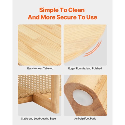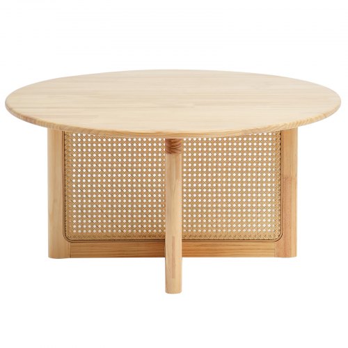 VEVOR Rattan Coffee Table, Round Rattan Woven Wood Mid Century Coffee Table with Rubber Wood Top, 33 in Modern Boho Circular Storage Coffee Table with Natural Wood Legs, for Living Room, Bedroom & Small SpacesRattan Coffee TablePremium MaterialsSpacious SurfaceEasy AssemblyVersatile DesignSecurity FeaturesShape: Round,Frame / Tabletop / Support Feet Material: Rubberwood,Load Capacity: 250 lbs / 113.4 kg,Color: Walnut,Item Model Number: CT-SR-02,Rattan Material: PE Rattan,Net Weight: 8.5 kg / 18.7 lbs,Product Size: 33.5 x 33.5 x 16.5 in / 850 x 850 x 420 mm