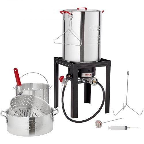 VEVOR Turkey Deep Fryer, 30-qt Turkey & 10-qt Fish Steamer Cooker Set, Outdoor Aluminum Seafood Frying Pot, 54,000 BTU Burner Propane Gas Boiler, Includes Baskets, Perforated Poultry Rack, Thermometer2-in-1 Multifunctional PotAbundant Accessories, Reliable MaterialUser-Friendly and Thoughtful DesignCreative Combinations for More FlavorsEnjoy DIY Culinary DelightsPerfect Companion for Outdoor CookingMaximum Heat Output: 54,000 BTU,Regulator Hose Length: 35.8 inch / 910 mm,Main Materials: SPCC + 1060 Aluminum,Color: Black + Silver,Item Model Number: FCKIT-14,Product Dimensions: 13x14.6x28.7 inch/ 330x370x730 mm,Net Weight: 18.3 lbs / 8.3 kg