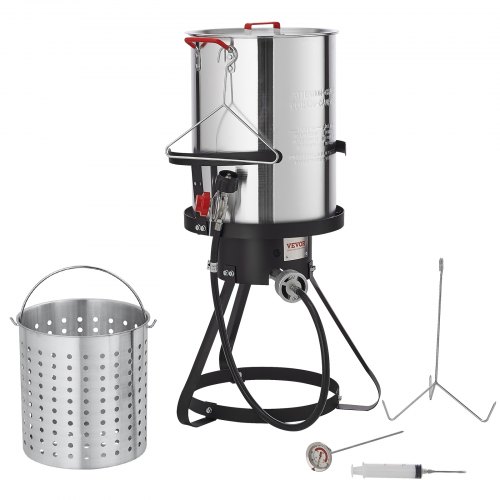 VEVOR Turkey Deep Fryer, 30-qt Turkey Fryer Boiler Steamer Cooker Set, Outdoor Aluminum Seafood Frying Pot, 54,000 BTU Burner Propane Gas Boiler, Includes Basket, Perforated Poultry Rack, ThermometerMultifunctional PotAbundant Accessories, Reliable MaterialUser-Friendly and Thoughtful DesignCreative Combinations for More FlavorsEnjoy DIY Culinary DelightsPerfect Companion for Outdoor CookingMaximum Heat Output: 54,000 BTU,Regulator Hose Length: 35.8 inch / 910 mm,Main Materials: SPCC + 1060 Aluminum,Color: Black + Silver,Item Model Number: 1630B,Product Dimensions: 15x15x31.3 inch/ 380x380x795 mm,Net Weight: 14.6 lbs / 6.62 kg