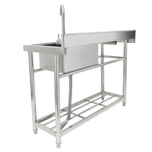 VEVOR Stainless Steel Utility Sink, 1 Compartment Free Standing Small Sink w/Workbench Faucet & legs, 47.2 x 19.7 x 37.4 in Commercial Single Bowl Sinks for Garage, Restaurant, LaundryAdequate cleaning spaceThickened leak-proof sinkPP drain pipeAdapts to uneven surfacesExtra-large workstationStainless steel frameFaucet Material: 304 Stainless Steel, Ceramic Valve Core,Item Model Number: S3-2,Surface Treatment: Brushed Metal Craftsmanship,Sink Dimensions: 19.7x13x8.7 in/500 x 330 x 220 mm,Product Weight: 27.6 lbs/12.5 kg,Main Material: Stainless Steel,Reserved Aperture: 1.26 in / 32mm