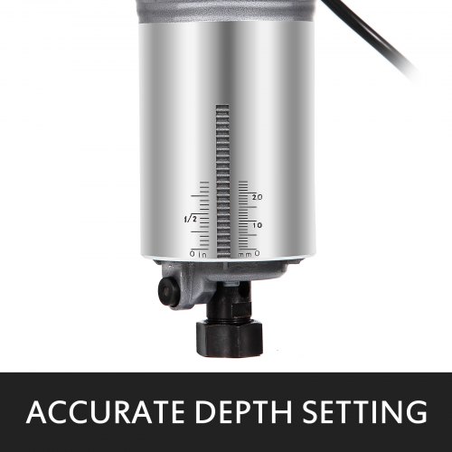 VEVOR Compact Router 1.25HP With Fixed Base, Plunge Base and Tilt Base, Variable Speed Wood Router Kit Max Torque 30,000RPM For Woodworking & Furniture ManufacturingAmazing DurabilityVariable SpeedSmooth Soft StartAccurate Depth SettingErgonomic DesignWide ApplicationCollet Chuck Capacity: 1/4" (6.35 mm) & 3/8" (9.5 mm),Input Power: 800W,Frequency: 50 / 60Hz,No Load Speed: 10,000-30,000 RPM,Max Depth: Approx.20 mm,Rated Voltage: 110V,Net Diameter without Trimmer Base: 2.55" (64.8 mm)