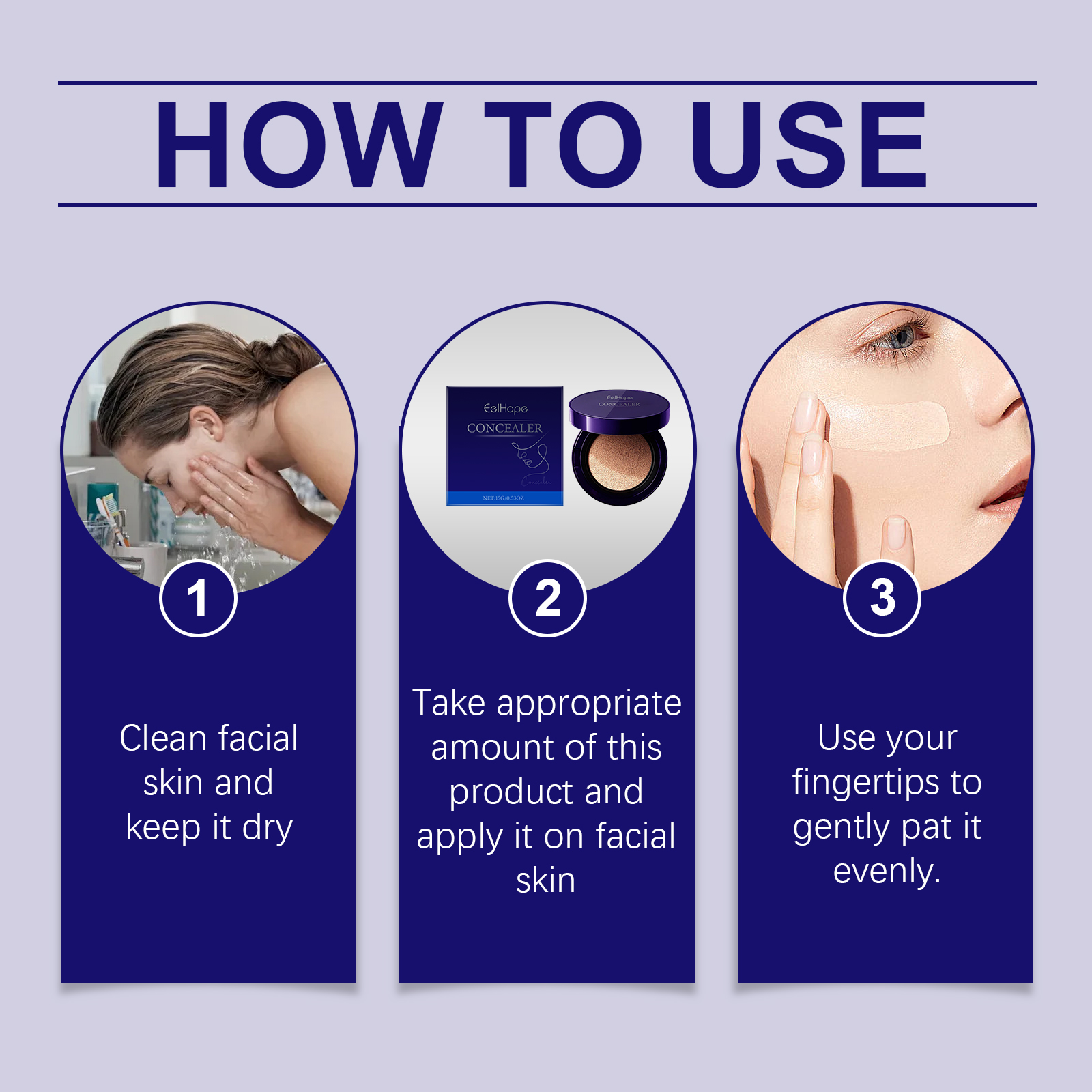 Our concealer Air cushion foundation contains Rhodiola root extract, titanium dioxide. It deeply hydrates and keeps skin hydrated and smooth for a long time. Its application method is very simple: clean the facial skin, keep the skin dry, take appropriate amount of this product, apply to the facial skin, gently pat the equaling spoon with your fingertips. And can perfectly cover the skin blemishes, create the perfect basic makeup effect.