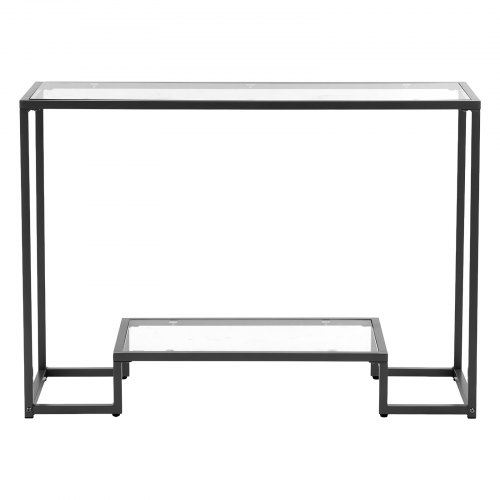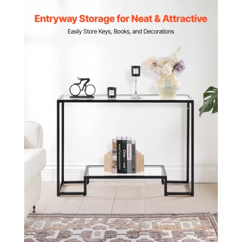 VEVOR 2-Tier Glass Console Table, Modern Rectangle Sofa Side Table with Tempered Glass Top and Iron Legs, Golden Consloe Desk with Anti-Tip Device for Living Room, Hallway, Entryway, Foyer, BlackMaximized StorageSpacious StorageSturdy Weight SupportSecurity UpgradedVersatile DesignSolid Metal FrameNumber of Storage Layers: 2 Layers,Upper Layer Weight Capacity: 99 lbs / 45 kg,Lower Layer Weight Capacity: 50 lbs / 22.7 kg,Item Model Number: YJX-XGZ-004,Material: Iron Pipe (Q195) + Glass,Product Dimensions: 42.1 x 14 x 29.72 in / 107 x 35.4 x 75.5 cm,Net Weight: 23.37 lbs / 10.6 kg