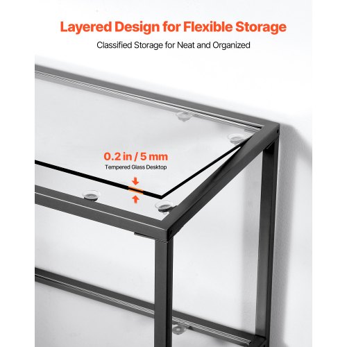 VEVOR 3-Tier Glass Console Table, Modern Rectangle Sofa Side Table with Tempered Glass Top and Iron Legs, Golden Consloe Desk with Anti-Tip Device for Living Room, Hallway, Entryway, Foyer, BlackMaximized StorageSpacious StorageSturdy Weight SupportSecurity UpgradedVersatile DesignSolid Metal FrameNumber of Storage Layers: 3 Layers,Single Layer Weight Capacity: 22 lbs / 10 kg,Total Weight Capacity: 66 lbs / 30 kg,Item Model Number: YJX-XGZ-003,Material: Iron Pipe (Q195) + Tempered Glass,Product Dimensions: 39.4 x 11.8 x 28.7 in / 100 x 30 x 72.9 cm,Net Weight: 28.66 lbs / 13 kg