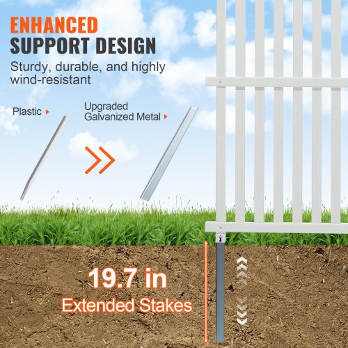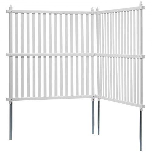 VEVOR 48" W x 48" H Vinyl Privacy Fence Panels, Air Conditioner Fence, Outdoor Privacy Screens for Trash Can, Pool Equipment Enclosure, Privacy Screen Kit Strip Panels (2 Panels)Enhanced Wind-resistant DesignConsiderate DetailsLong-Lasting DurabilityUsage CautionsEasy-to-Clean PVC PanelsAir Conditioner Fences for Your YardHorizontal/Stripe Panel Material: PVC,Number of Sides: 2,Ground Stake Material: Galvanized Sheet,Color: White,Item Model Number: 12220,Style: Stripe,Net Weight: 23.15 lbs/10.5 kg