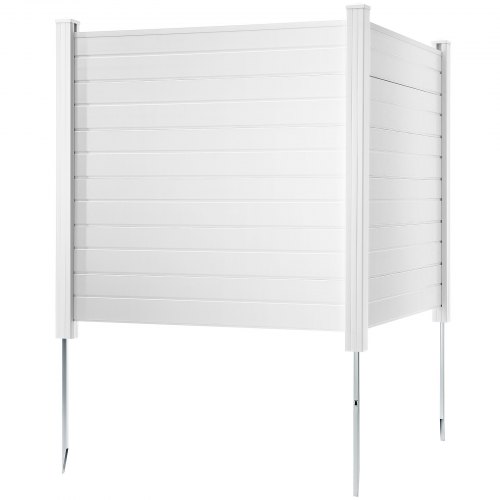 VEVOR Outdoor Privacy Screens, 50" W x 50" H Air Conditioner Fence, Pool Equipment Enclosure, Horizontal Vinyl Privacy Fence, Perfect to Enclose Trash Can and A/C Units (2-Panel)Enhanced Wind-resistant DesignLarge Size Vinyl Privacy Fence PanelsLong-Lasting DurabilityUsage CautionsEasy-to-Clean PVC PanelsAir Conditioner Fences for Your YardNumber of Sides: 2,Panel Size(L x W): 50x50 inch/1270x1270 mm,Ground Stake Material: Galvanized Sheet,Color: White,Item Model Number: 12227-2,Ground Stake Length: 27.5 inch/700 mm,Post/Panel Material: PVC,Style: Horizontal,Net Weight: 45.2 lbs/20.5 kg