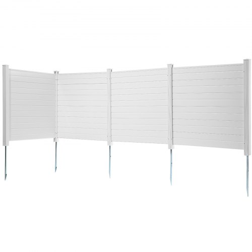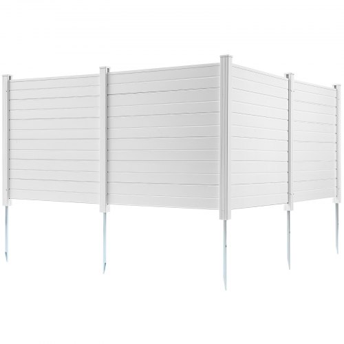 VEVOR Outdoor Privacy Screens, 50" W x 50" H Air Conditioner Fence, Pool Equipment Enclosure, Horizontal Vinyl Privacy Fence, Perfect to Enclose Trash Can and A/C Units (4-Panel)Enhanced Wind-resistant DesignLarge Size Vinyl Privacy Fence PanelsLong-Lasting DurabilityUsage CautionsEasy-to-Clean PVC PanelsAir Conditioner Fences for Your YardNumber of Sides: 4,Panel Size(L x W): 50x50 inch/1270x1270 mm,Ground Stake Material: Galvanized Sheet,Color: White,Item Model Number: 12227-4,Ground Stake Length: 27.5 inch/700 mm,Post/Panel Material: PVC,Style: Horizontal,Net Weight: 72.8 lbs/33 kg