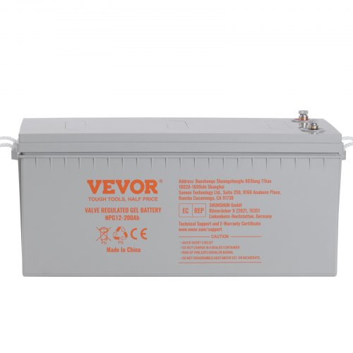 VEVOR Deep Cycle Battery, 12V 200 AH, AGM Marine Rechargeable Battery, High Self-Discharge Rate 1400A Current, for RV Solar Marine Off-Grid Applications UPS Backup Power System, Tested to UL Standards12V 200Ah Deep Cycle BatteryAbsorbent Glass Mat Technology (AGM)Secure and DurableHigh PerformanceVersatile ApplicationFriendly NoteCapacity: 200Ah,Voltage: 12V,Item Model Number: NPG12-200Ah,Product Weight: 116.4 lbs / 52.8 kg,Product Dimensions: 21.7 x 9.4 x 8.7 in / 522 x 238 x 222 mm,Discharge Temperature: 5℉ to 122℉,Storage Temperature: -4℉ to 122℉