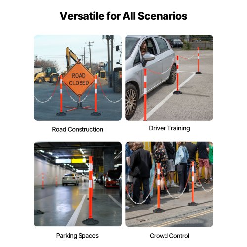 VEVOR 3 Packs Traffic Delineator Posts 34 in Safety Cones Weighted Base & Chains<br/>Handle Design<br/>360° Reflective Strips<br/>Wide Base for Stability<br/>High-Quality Materials<br/>Detachable Design for Easy Transport<br/>Versatile Applications<br/>Chain: Length: 5.00 ft / 1.50 m, Stainless Steel Clasps: 1,Number of Reflective Strips per Unit: 3 Pieces, 13.94 x 5.31 in / 100 x 135 mm ,Item Model Number: WP-13,Post Weight: 0.60 lbs / 0.27 kg,Base Weight: 2.20 lbs / 1 kg,Base Dimensions: φ8.66 x 2.36 in / φ220 x 60 mm, Material: Rubber-Plastic + PP,Product Dimensions: φ8.66 x 34.29 in / φ220 x 871 mm,Net Weight: 3.85 kg / 8.49 lbs,Post Dimensions: φ1.57 x 33.46 in / φ40 x 850 mm