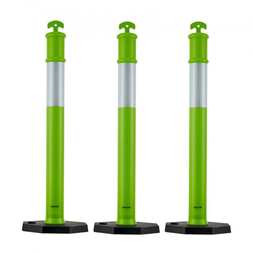 VEVOR 3 Packs Traffic Delineator Posts 48 in Safety Cones Weighted Base Green<br/>Handle Design<br/>360° Reflective Strips<br/>Wide Base for Stability<br/>High-Quality Materials<br/>Detachable Design for Easy Transport<br/>Versatile Applications<br/>Number of Reflective Strips per Unit: 1 Piece, 9.45 in / 240 mm,Base Weight (Single): 8.82 lbs / 4 kg,Post Weight (Single): 1.54 lbs / 0.7 kg,Color: Green + Black,Item Model Number: WP-06-R4,Quantity: 3 pcs,Material: LDPE + Rubber,Base Dimensions: 13.78 x 13.78 x 1.38 in / 350 x 350 x 35 mm,Product Dimensions: φ14.76 x 44.88 in / φ375 x 1140 mm,Net Weight: 14.20 kg / 31.31 lbs,Post Dimensions: φ4.49 x 44.88 in / φ114 x 1140 mm