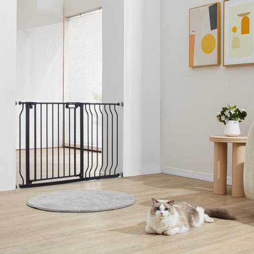 VEVOR Baby Gate, 29.5"-48.4" Extra Wide, 30" High, Dog Gate for Stairs Doorways and House, Easy Step Walk Thru Auto Close Child Gate Pet Security Gate with Pressure Mount Kit and Wall Mount Kit, BlackGuardian of Your Little OneSmart Dual-Lock TechDesigned for Convenience & SecurityUpgraded No-Drill InstallationVersatile Uses GaloreTwo Trendy ShadesTensile Strength: >45 lbs/20 kg,Bar Spacing: 2.1 inches/53 mm,Color: Black,Material: Iron (Powder-Coated) + Plastic,Impact Resistance: 33 lbs/15 kg,Latch Handle: Dual-Lock Tongue Structure, ABS,Latch Mechanism: 3-Step Opening, Bottom Automatic Locking,Width Range: 29.5 - 48.4 inches/749 - 1229 mm,Angle: 180°,Item Model Number: B3336,Height: 30 inches/762 mm,Door Opening Width: >21 inches/533 mm,Net Weight: 10.8 lbs/4.9 kg