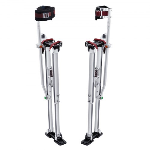 VEVOR Drywall Stilts, 36''-50'' Adjustable Aluminum Tool Stilts with Protective Knee Pads, Durable and Non-slip Work Stilts for Sheetrock Painting, Walking, Taping, SilverAdjustable Metal Buckle StrapsLightweight & CompactTextured Rubber BaseHome DecorationTree PruningAmazing ShowWall PaintingItem Size (H x L x W): 48 x 11 x 5.5 in / 122 x 28 x 14 cm,Adjustable Height: 36-50 in / 91.4-126.7 cm,Color: Silver,Model: SGBGQ-3650,Max. Load Capacity: 228 lbs / 103 kg,Frame Material: Aluminum Alloy,Fit Feet Size: 10.6-11.4 in / 27-29 cm,Item Weight: 16 lbs / 7.3 kg,Base Material: Rubber