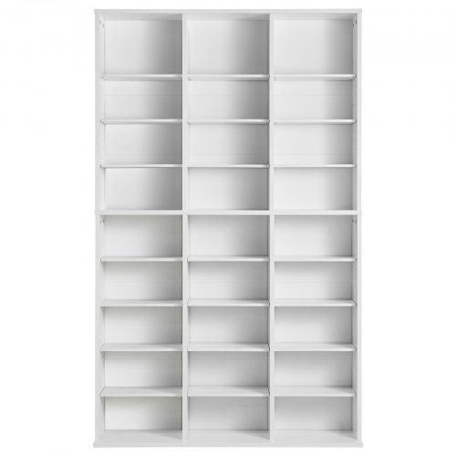 VEVOR Media Storage Cabinet, 9-Layer DVD Shelf Holds 756CDs, Adjustable CD Shelves 27 Compartments, Protects & Organizes Music, Movie, Video Games or Memorabilia Collections, WhiteCustomizable Storage SpaceSturdy StandingSafety Anti-tip DesignEfficient ClassificationMulti-functional StorageEasy InstallationNumber of Shelves: 9,Number of Compartments: 27,Color: White,Item Model Number: USF00102,Product Weight: 48.5 lbs/22 kg,Classification Labels: Kraft Paper, 71x12 mm, 120 pcs,Product Dimensions: 37.36x7.17x60.55 in/949x182x1538 mm,Overall Load Capacity: 148.81 lbs/67.5 kg, 5.51 lbs/2.5 kg per Compartment