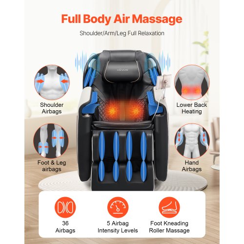 VEVOR Full Body Massage Chair, 3D Zero Gravity Recliner with SL Track, 18 Auto Modes, Heat, Foot Rollers, Armrest Control, LCD Display, 36 Airbags, Retractable FootrestPrecise Massage Relieve FatigueFull Body MassageZero Gravity Comfort ExperienceFull Body RelaxationFoot Massage for Deep RelaxationComfortable & Ultimate ExperiencePower Cord Length: 4.92 ft / 1.5 m,Weight Capacity: 350 lbs / 160 kg,Item Model Number: BH-6208,Product Weight: 154.76 lbs / 70.2 kg,Package Width: 30.51 in / 775 mm,Product Dimensions: 61.02 x 29.13 x 41.34 in / 1550 x 740 x 1050 mm (Upright),Product Width: 29.13 in / 740 mm