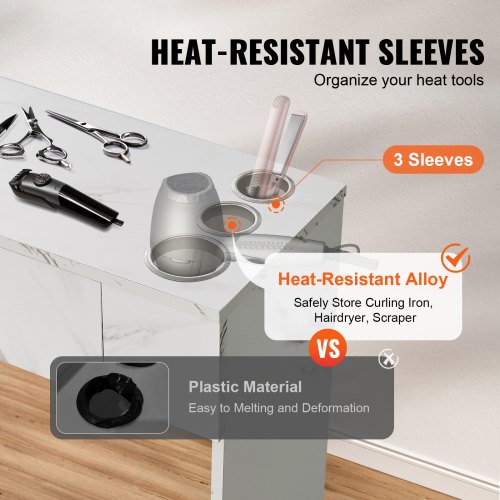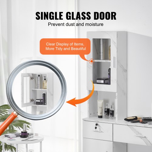 VEVOR Salon Workstation, Wall-Mounted Unit for Hair Professionals, Spa Styling Storage Solution, Includes 1 Cabinet, 3 Shelves, 2 Drawers (1 with Lock), in WhiteMatte FinishLockable DrawersHeat-Resistant Tool SleevesVersatile UsageEasy AssemblyVersatile Hair Stylist StationStorage Cabinet Specifications: 1 Single-door, 1 Shelf,Storage Cubby Specifications: With Glass Door, 3-layer,Color: Marble White,Item Model Number: WC1003,Product Weight: 28.5 kg/62.83 lbs,Product Dimensions: 102.8x30x170 cm/40.47×11.81×66.92 inch,Number of Sleeves: 3,Main Material: MDF + Heat-Resistant Alloy,Number of Drawers & Locks: 2 & 1