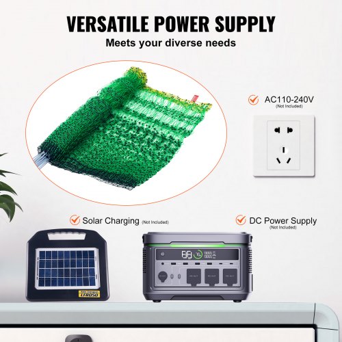 VEVOR Electric Fence Netting, 42" H x 164' L, PE Net Fencing with Posts & Double-Spiked Stakes, Utility Portable Mesh for Goats, Sheep, Lambs, Deer, Hogs, Dogs, Used in Backyards, Farms, and RanchesPrecision ProtectionEnhanced StabilityWide ApplicabilityEffective CurrentEasy InstallationWindproof Kit IncludedPost Material: Fiberglass,Color: Green + Yellow + Black,Item Model Number: S1080815D 108cm-15cm,Product Weight: 13.66 lbs/6.2 kg,Power Options: AC110-240V, Solar, and DC Power Supply,Power Supply: Not Included,Stake Material: Q235,Product Size: 42 in x 164 ft/1.06 x 49.98 m