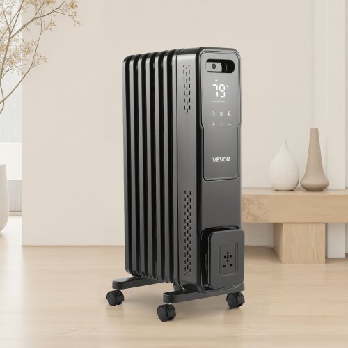 VEVOR Electric Oil Filled Radiator, 1500W Radiant Space Heater with Dual U-shaped Heating Tubes, Over-Heat Protections,3 Heat Settings,24h Timer, Flexible Casters, Remote Control for Indoor,Black<br/>Efficient Heating Solution<br/>Customizable Control<br/>Security Features<br/>Efficient Heat Distribution<br/>Convenient & Quiet<br/>Sturdy & Cost-Effective<br/>Timer: 0–24 Hours,Item Model Number: HD9113E-L7QL,Heat Settings: 3 Levels – 600W / 900W / 1500W,Temperature Range: 41–95℉ / 5–35°C,Item Dimensions: 14.02 x 9.76 x 26.18 inch / 356 x 248 x 665 mm,Power: 1500W,Heating Element: L-Shaped Fins x 7, Dual U-Shaped Tubes,Item Weight: 17.59 lbs / 7.98 kg,Power Supply: AC 120V, 60Hz