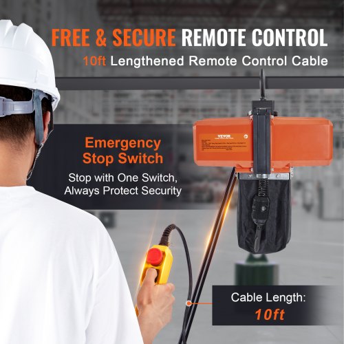 VEVOR 1100 lbs Electric Chain Hoist 15 FT Lifting Height, 120V Electric Hoist, Single Phase Overhead Crane with G100 Chain, 10 ft Wired Remote Control for Garage, Shop, Hotel, HomeG100 ChainRemote ControlPowerful Copper MotorEasy to Install1100 lbs Lifting CapacityVersatile ApplicationsLifting Speed: 10 ft/min (3 m/min),Chain: G100, Φ0.25 in/6.3 mm,Lifting Height: 15 ft/4.5 m,Control Mode: Wired Remote Control (10 ft),Product Size (L x W x H): 15 x 8.2 x 20.1 in/380 x 208 x 510 mm,Rated Rotation Speed: 3500 rpm,Voltage: 120V AC, 60Hz,Item Model Number: BDH500B,Lifting Load Capacity: 1100 lbs/499 kg,Product Weight: 50.6 lbs/22.93 kg (accessories include),Rated Torque: 0.9 NM,Power: 700W