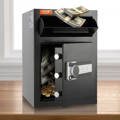VEVOR 2.5 Cub Depository Safe, Deposit Safe with Drop Slot, Electronic Code Lock and 2 Emergency Keys, 20.27'' x 13.97'' x 13.97'' Business Drop Slot Safe for Cash, Mail in Home, Hotel, OfficeMade for Lasting UseTwo Access WaysSmart 30s Auto-Alarm SystemEffortless InstallationVersatile UseComplete Accessories & Elegant AppearanceInterior Dimensions: 15.94x13.77x12.99 inch/405x350x330 mm,Vibration Alarm: Yes,Capacity: 2.5C,Power Source: 4 AA Batteries (Not Included),Item Model Number: SS-515,Product Weight: 41.88 lbs/19 kg,Material: Q235 Cold Rolled Steel,Password: 3-12 Digit Password, up to 2 Passwords,Product Size: 20.27x13.97x13.97 inch/515x355x355 mm