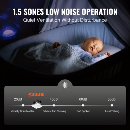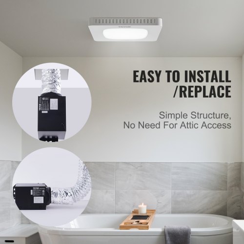 VEVOR Bathroom Exhaust Fan, 110 CFM High-Efficiency Ventilation, 1.5sones Low Noise Operation All-Copper Motor, Energy-Saving Bathroom Ceiling Fan, Need For Attic Access, For Various CeilingsEfficient and QuietSturdy and DurableEasy InstallationVersatile ApplicationsMinimalist DesignOther UsageAirflow: 110 CFM,Noise Level: ≤33 (1.5 Sones),Primary Material: Galvanized Steel, Alloy Steel,Color Temperature: ≤4000,Item Model Number: BT-BPT190BL,Rated Power: 28W,Net Weight: 5 lbs / 2.25 kg,Luminous Flux: 900