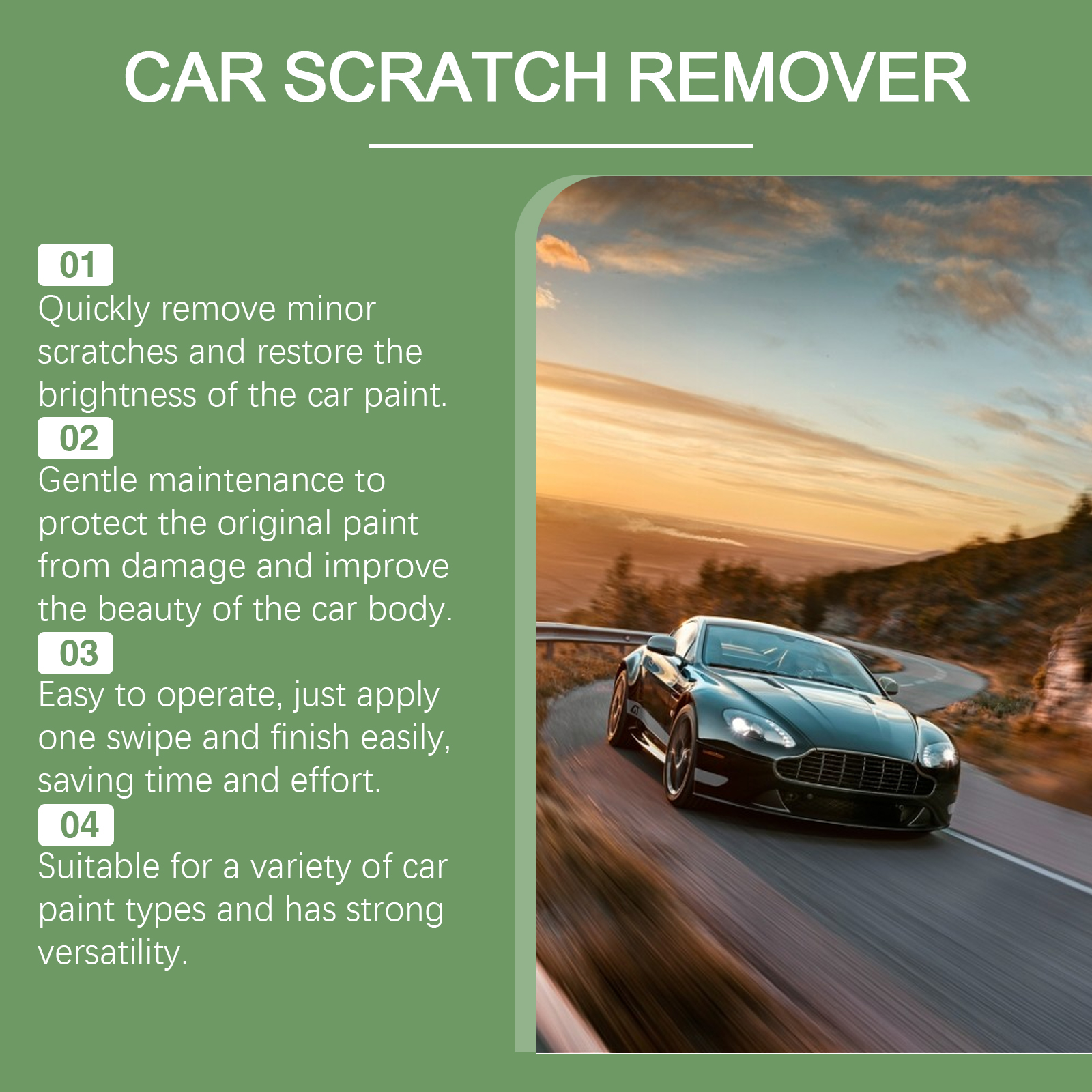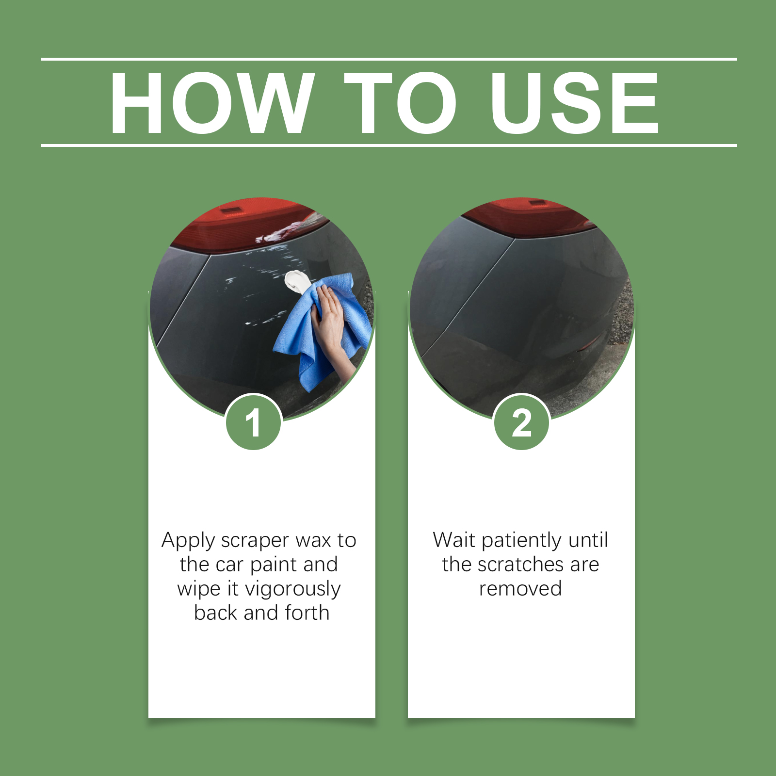 Our car scratch care wax contains mineral oil and silica. It can quickly restore the gloss and brightness of the car paint, remove the oxide layer and subtle flaws, and make the car glow. Its method of use is very simple: apply scratching wax to the car paint, wipe back and forth, and wait patiently until the scratch is eliminated. And the effect can be immediate, slight scratches are instantly invisible, bringing new luster to the car.