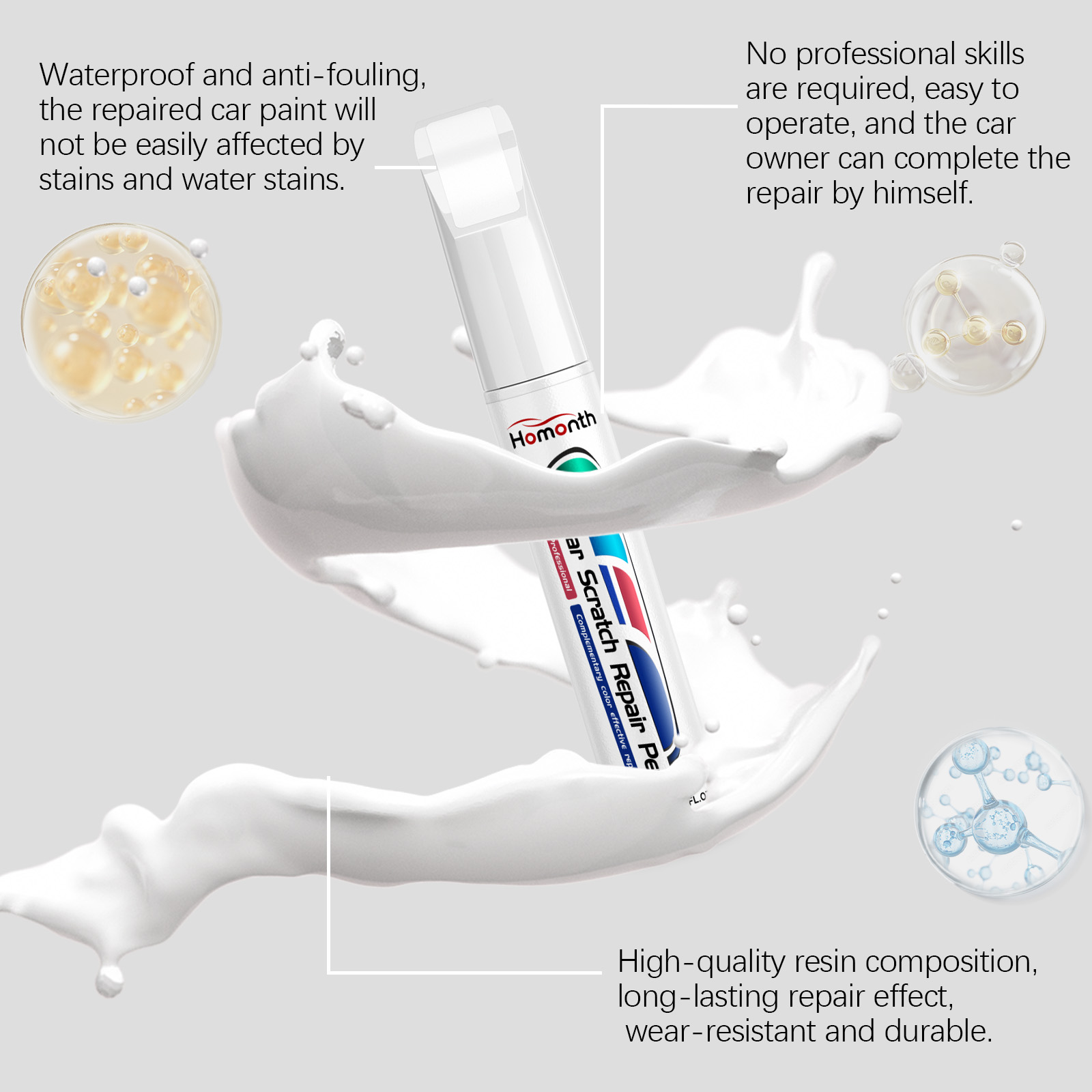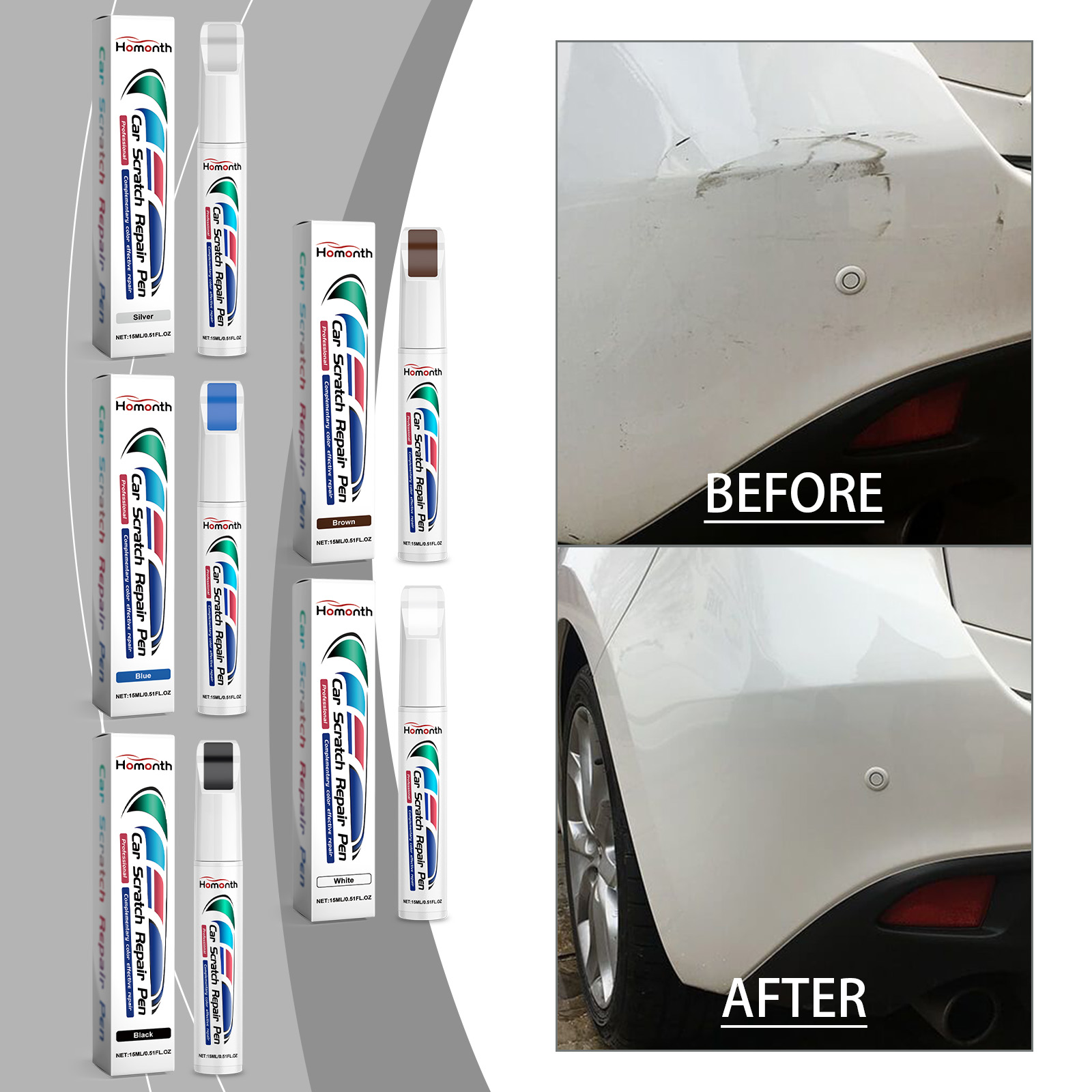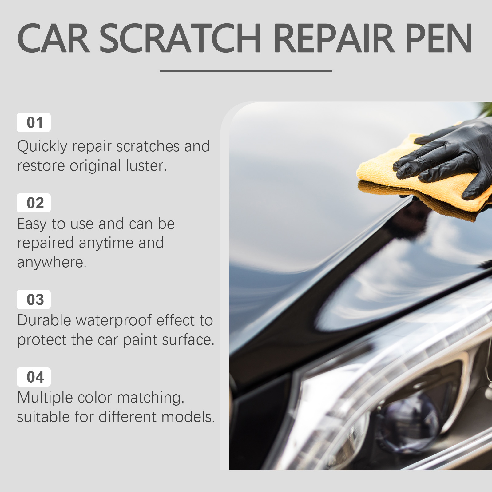 Our car scratch repair pens contain iron oxide and silica. It can help restore the color of the car and make your car look brand new. The way to use it is very simple: wash the car and dry it first. Apply the product to the parts of the car that need to be repainted, and let it sit for 1-2 hours after application. And can repair the surface damage of the car's ability to make your car look more beautiful.