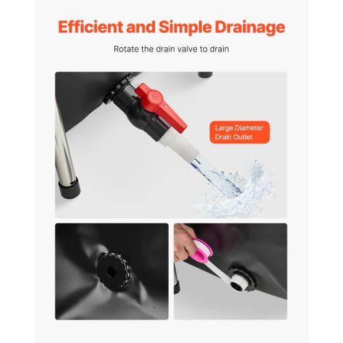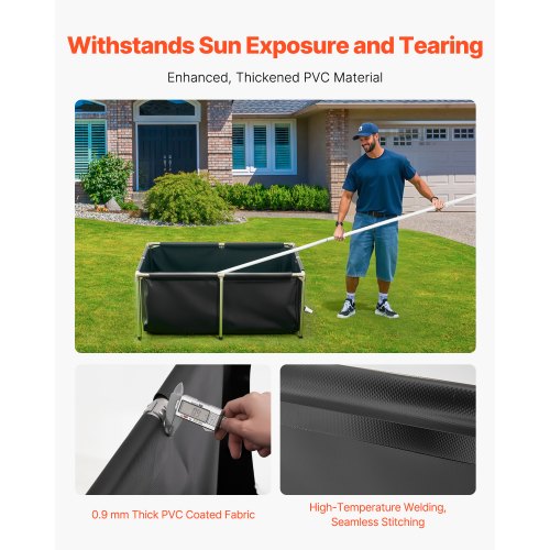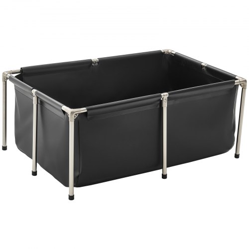 VEVOR Canvas Fish Pond, 126.8 Gal Above Ground Fish Pond, Foldable PVC Koi Tank, Rectangular Goldfish Tank with Stable Frame and Drain Valve, for Aquaculture, Koi Breeding, and Irrigation (Black)