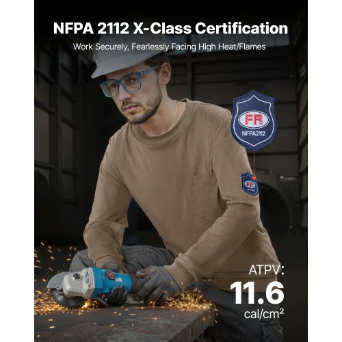VEVOR FR Shirt Flame Resistant Long Sleeve Workwear for Men Gray 2XL<br/>Advanced FR Protection<br/>Self-Extinguishing & Secure<br/>Comfort That Lasts<br/>Functional Work Design<br/>Wide Range of Applications<br/>Soft & Flexible for Active Work<br/>Sleeve Length: 23.23 in / 590 mm,Back Length: 29.53 in / 750 mm,Color: Gray,Chest Width: 25.20 in / 640 mm,Fabric Type: 100% Cotton,Gender Fit: Men,Brand Size: 2XL,Pocket Availability: Yes,Fabric Weight: 7 oz/yd² / 238 g/m²,Pre-wash/Pre-shrink Treatment: Yes,Wash Cycle Endurance: Up to 100 washes,Item Model Number: YT-2XL-G,Net Weight: 0.93 lbs / 0.42 kg,ATPV Value: 11.6 cal/cm²,Shoulder Width: 25.98 in / 660 mm