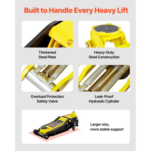 VEVOR Low Profile Floor Jack Steel Hydraulic Car Jack 4 Ton Dual Piston Pump<br/>Thickened Steel<br/>Release Valve<br/>Hydraulic Pump<br/>Powerful Load Capacity<br/>Wide Lifting Range<br/>Dual-Piston Lifting<br/>Item Model Number: WD-B-04250-B00-0,Product Dimensions: 32.1 x 15 x 7.9 in/815 x 380 x 200 mm,Net Weight: 102.5 lbs/46.5 kg (including all accessories)