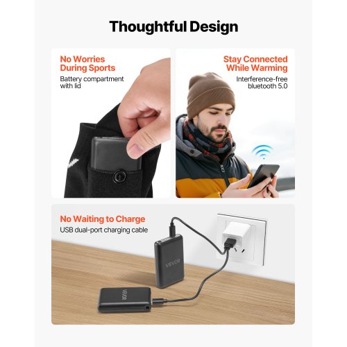 VEVOR Electric Heated Socks 5000mAh L Size Rechargeable Heated Socks for Hunting<br/>Cold Protection Experts<br/>Long-Lasting Warmth<br/>Versatile Use<br/>Durable and Washable<br/>Comfortable Fit<br/>Triple Thoughtful Design<br/>Sock Material: Modal Core Yarn + Faux Mink Fleece,Size: L,Applicable Range: US: 9-12; EU: 42-45,Color: Black & Gray & Orange,Item Model Number: KEC-5000,Net Weight: 1.06 lbs / 0.48 kg