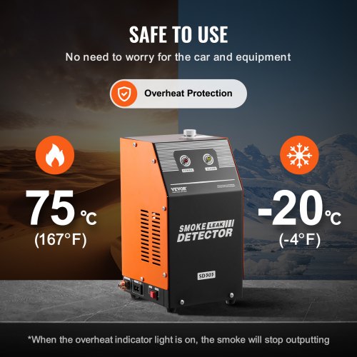 VEVOR Automotive Smoke Machine Leak Detector EVAP Fuel Smoke Machine Leak TesterComprehensive Leak DetectionSuitable for Various VehiclesBuilt-in Air PumpDual Detection Modes for PrecisionUse with Peace of MindComplete Accessory KitOperating Temperature: -4°F to 167°F / -20℃ to 75℃,Output Flow Rate: 8 L/min,Main Materials: Steel, Aluminum, Brass, Silicone,Voltage: DC12V,Item Model Number: SD303,Product Weight: 7.18 lbs / 3.26 kg,Output Pressure: 19 - 23 PSI,Smoke Mode Current: 5.6 - 6.8A,Product Dimensions: 6.1" x 6.7" x 11.4" / 155 x 170 x 290 mm