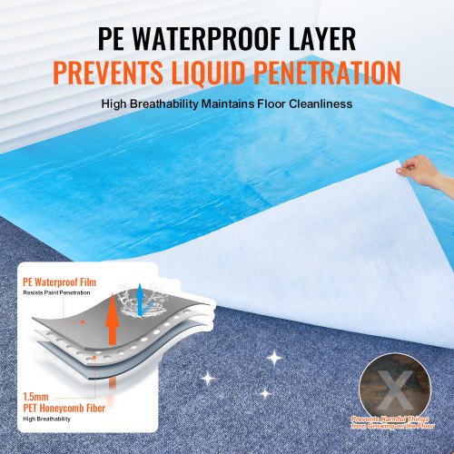 VEVOR Carpet Protection Film, 40" x 84' Floor and Surface Shield, Easy to Cut Simple Installation, Fiber Fabric Car Mat Protection Film Roll for Construction & Renovation,BlueScope of ApplicationLarge Coverage AreaStrong GripEasy LayingMultiple Size OptionsSafe and SmellessThickness: 0.06'' / 1.5 mm,Length: 84 x 3.33ft / 25.6 x 1 m,Color: Blue,Model: VGWS18025,Material: Polyester Fiber + PE Anti-Slip Film,Coverage Area: 275 sq.ft,Product Dimensions: 1008 x 40'' / 25603.2 x 1000 mm,Net Weight: 10.36lbs / 4.7kg
