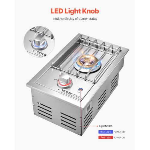 VEVOR Single Grilling Side Burner for Outdoor 17,000BTU Propane & Natural GasSingle Side BurnerPropane & Natural Gas ConvertibleRust-Resistant & DurableEasy to CleanBuilt-In DesignPerfect Outdoor Kitchen CompanionMin. Gas Inlet Pressure: 1.0 kPa,Number of Burners: 1,Burner Heat Output: 17,000 BTU,Supported Gas: Natural Gas & Propane,Compatible Connector Size: 5/8-18,Gas Input: Natural Gas 4" WC, Liquefied Gas 10" WC ,Product Size: 20.47 x 12.6 x 11 in / 520 x 320 x 280 mm (with cover),Voltage: AC100-240V 50/60Hz,Item Model Number: GSB1L,Pipe Max. Pressure: 3.45 kPa,Current: 1.0A,Connector Specification: 5/8-18,Net Weight: 18.74 lbs / 8.5 kg