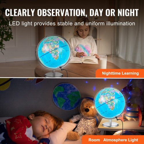 VEVOR Talking World Globe, 9 in/228.6 mm, Interactive Globe for Kids Early Learning Teaching, Educational Globe with Smart Talking Pen LED Night Light USB Interface, Gifts for Children Boys & GirlsCross-Disciplinary Educational ToolRecording Talking Pen9 in/228.6 mm High-Definition Printed GlobeLED Night Lighting720° Rotating Metal StandExciting STEM Educational ToyBall Material: ABS,Item Model Number: SKU2,Product Dimensions: 11.02 x 10.24 x 11.81 in/280 x 260 x 300 mm,Bracket Material: Metal,Rotation Angle: 720°,Net Weight: 2.87 lbs/1.3 kg,Ball Size: 9 in/228.6 mm,Power Supply: USB DC5V