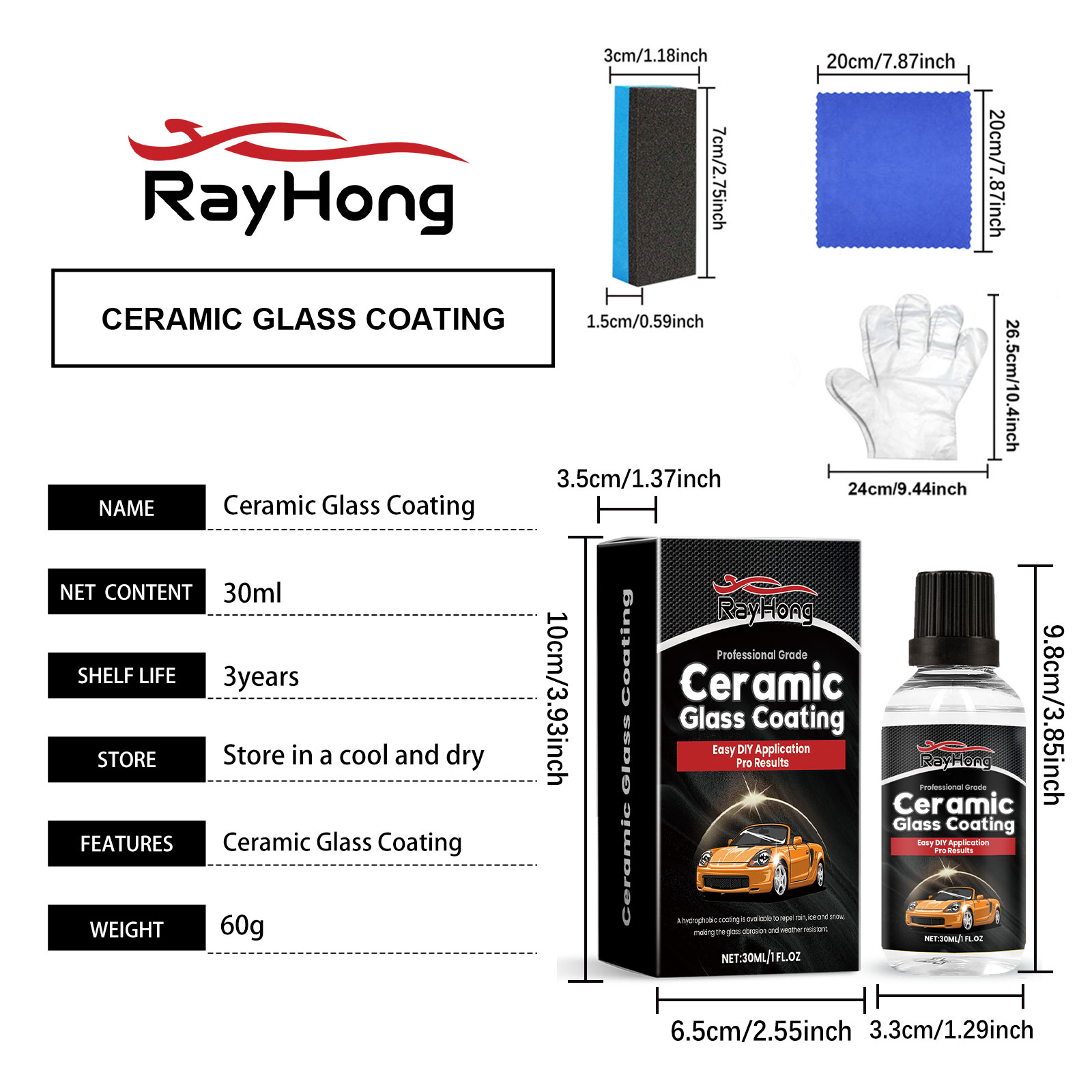 Rayhong Ceramic Glass Coating Agent, Cleaning Coating Agent Window Waterproof, Waterproof, Anti-Fog Glass Waterproof Agent
