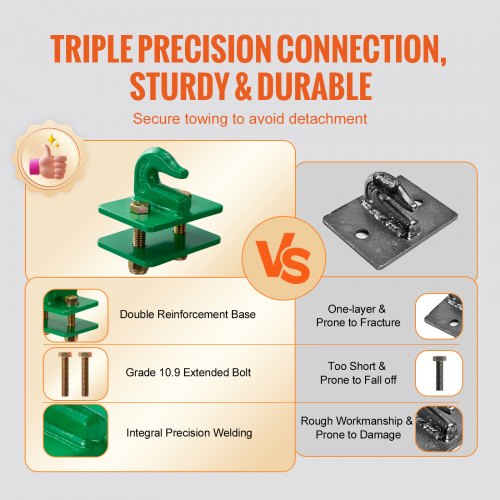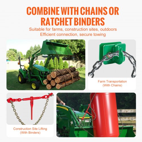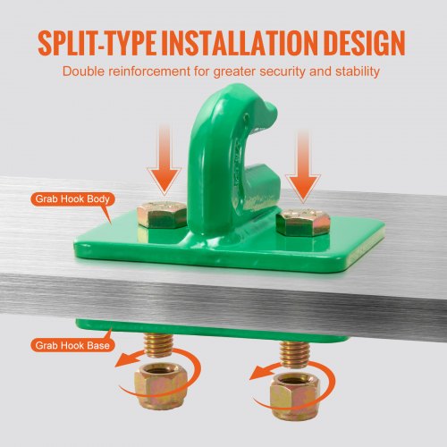 VEVOR 3/8" Tractor Bucket Hooks Grade 70 Forged Steel Grab Hooks Backer PlateHigh Load CapacityUniversal SizeFlexible & EfficientSturdy ConstructionEasy InstallationSplit StructureNut Quantity: 4 Pieces,Bolt Size: 1/2-13 x 2-1/2,Mounting Plate Size: 4.25" x 3.25"/107.95 x 82.55 mm,Nut Specification: 1/2-13 x 1/2,Breaking Load Limit: 15000 lbs/6803.88 kg,Product Size (L x W x H): 4.25" x 3.24" x 2.75"/108 x 82.5 x 70 mm,Grab Hook Size: 3/8"/9.52 mm,Bolt Quantity: 4 Pieces,Item Model Number: QY1,Material Grade: G70,Net Weight: 6.08 lbs/2.76 kg (including all accessories),Mounting Distance: 2.24"/57 mm,Working Load Limit: 6600 lbs/2993.7 kg