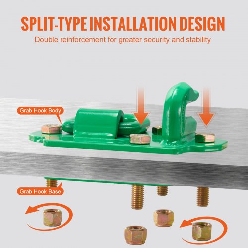 VEVOR 3/8" Tractor Bucket Hooks Grade 70 Steel Grab Hooks 12,000 lbs for RV UTVHigh Load CapacityUniversal SizeFlexible & EfficientSturdy ConstructionEasy InstallationSplit StructureNut Quantity: 8 Pieces,Bolt Size: 1/2-13 x 2-1/2,Ring Shape: D Ring,Mounting Plate Size: 8" x 4.25"/203.2 x 107.95 mm,Nut Specification: 1/2-13 x 1/2,Installation Mode: Split Type,Breaking Load Limit: 12000 lbs/5443.1 kg,Product Size (L x W x H): 7.87" x 4.21" x 2.75"/200 x 107 x 70 mm,Ring Diameter: 1/2"/12.7 mm,Grab Hook Size: 3/8"/9.52 mm,Bolt Quantity: 8 Pieces,Item Model Number: QY3,Material Grade: G70,Net Weight: 12.12 lbs/5.5 kg (including all accessories),Working Load Limit: 6600 lbs/2993.7 kg