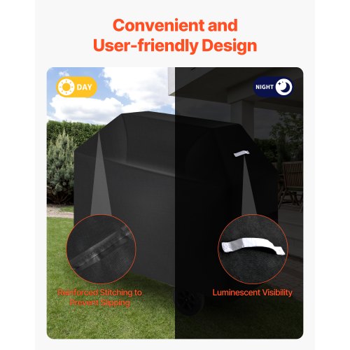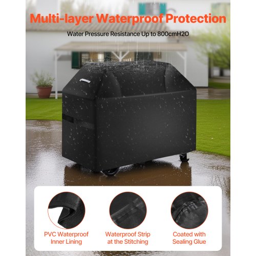 52 inch Grill Cover Heavy Duty BBQ Gas Grill Cover Outdoor Barbecue WaterproofExceptional DurabilityAll-Season DesignBroad CompatibilityQuick Tensioning, Windproof DesignEasy to CleanStylish DesignTightening Structure: 2 Velcro Straps,Applicable Products: Fits covers up to 52 inch long and 26 inch wide, compatible with Weber, Genesis, Charbroil, and other gas grills.,Color: Black Fabric, White Reflective Strips,Item Model Number: DD-52x26x43,Product Single Weight: 3.4 lbs/ 1.53 kg,Fabric Layers: PVC Inner Lining + Polyester Fiber Layer + Waterproof Layer,Main Material: 600D Polyester, 280 GSM/m